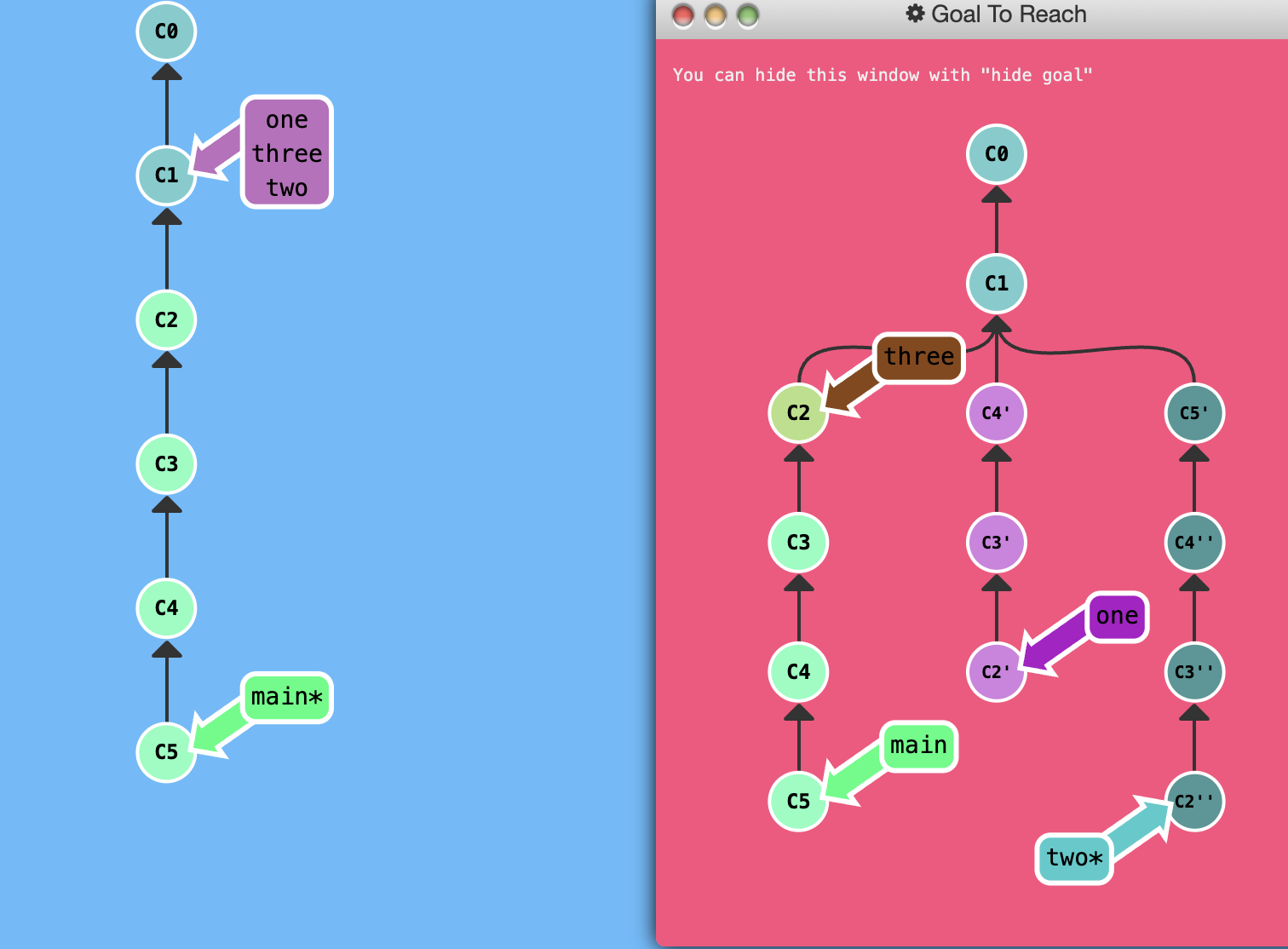 ApplicationsGit题解77 $ git checkout one$ git cherry-pick C4 C3 C2$ git checkout two$ git cherry-pick C5 C4 C3 C2$ git rebase C2 three