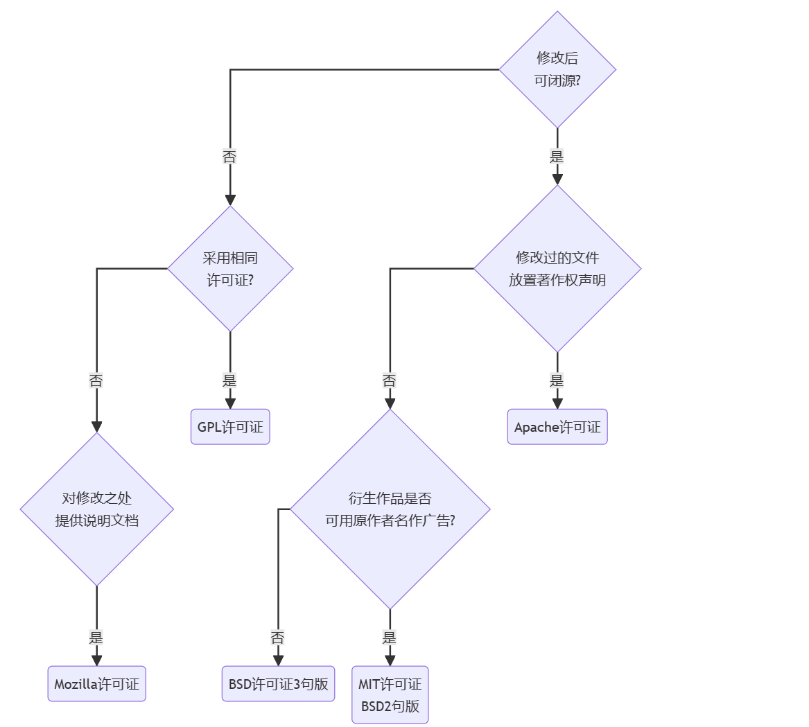 对于网络上的图,对LGPL的表达缩略的并不恰当,故不放置在此flowchart图中了。对LGPL感兴趣的可去查阅[5]