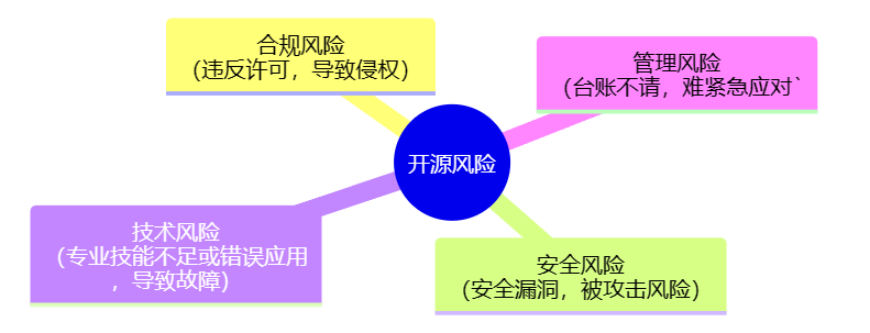 开源软件在最为敏感的金融行业的应用主要面临合规风险、安全风险、技术风险和管理风险等四类风险[16]